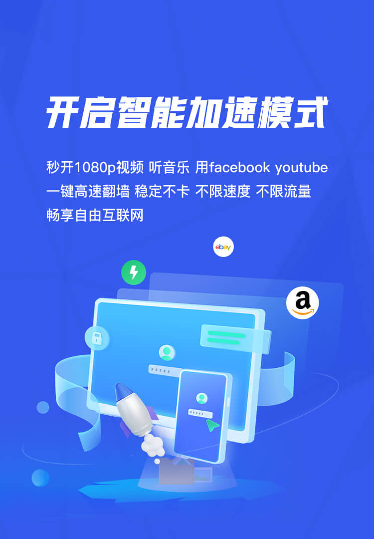 特有的国内外,智能分流技术,畅快上网体验,完美支持各种软件网站,拒绝闪退,独享宽带,国际骨千宽带节点,无延迟更畅快!超大宽带和无限流量带来的高速网络体验。